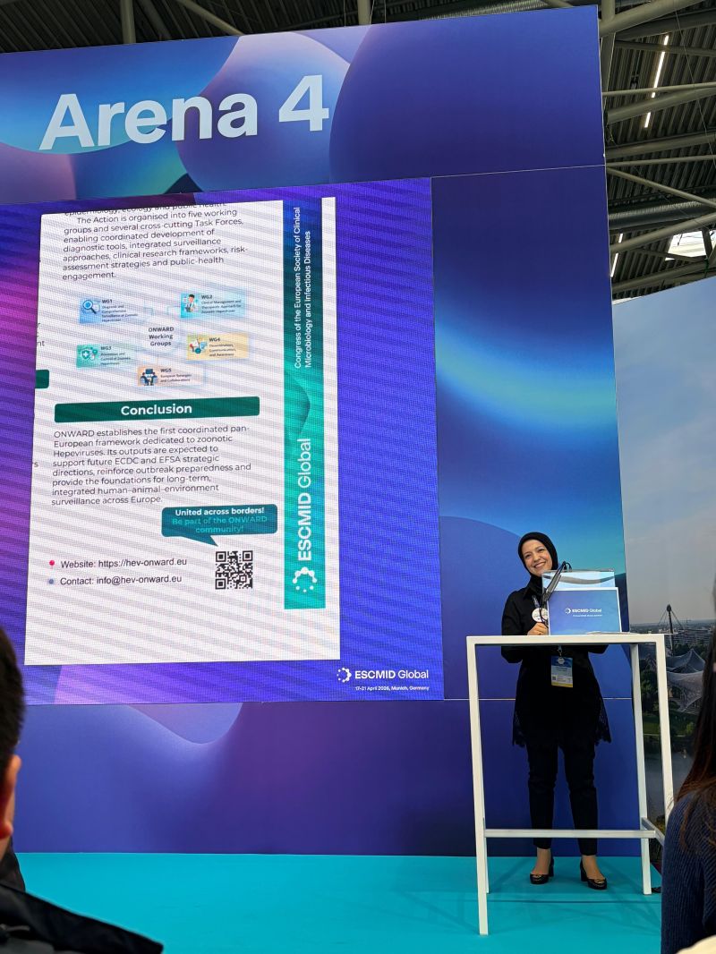 ONWARD contributed to the scientific programme with an oral presentation delivered by Dr. İmran Hasanoğlu on behalf of the network, in front of a packed auditorium of clinicians, microbiologists and infectious disease specialists. The talk positioned zoonotic hepeviruses firmly on the European infectious diseases agenda and made the case that HEV and Rocahepevirus ratti can no longer be treated as peripheral concerns.